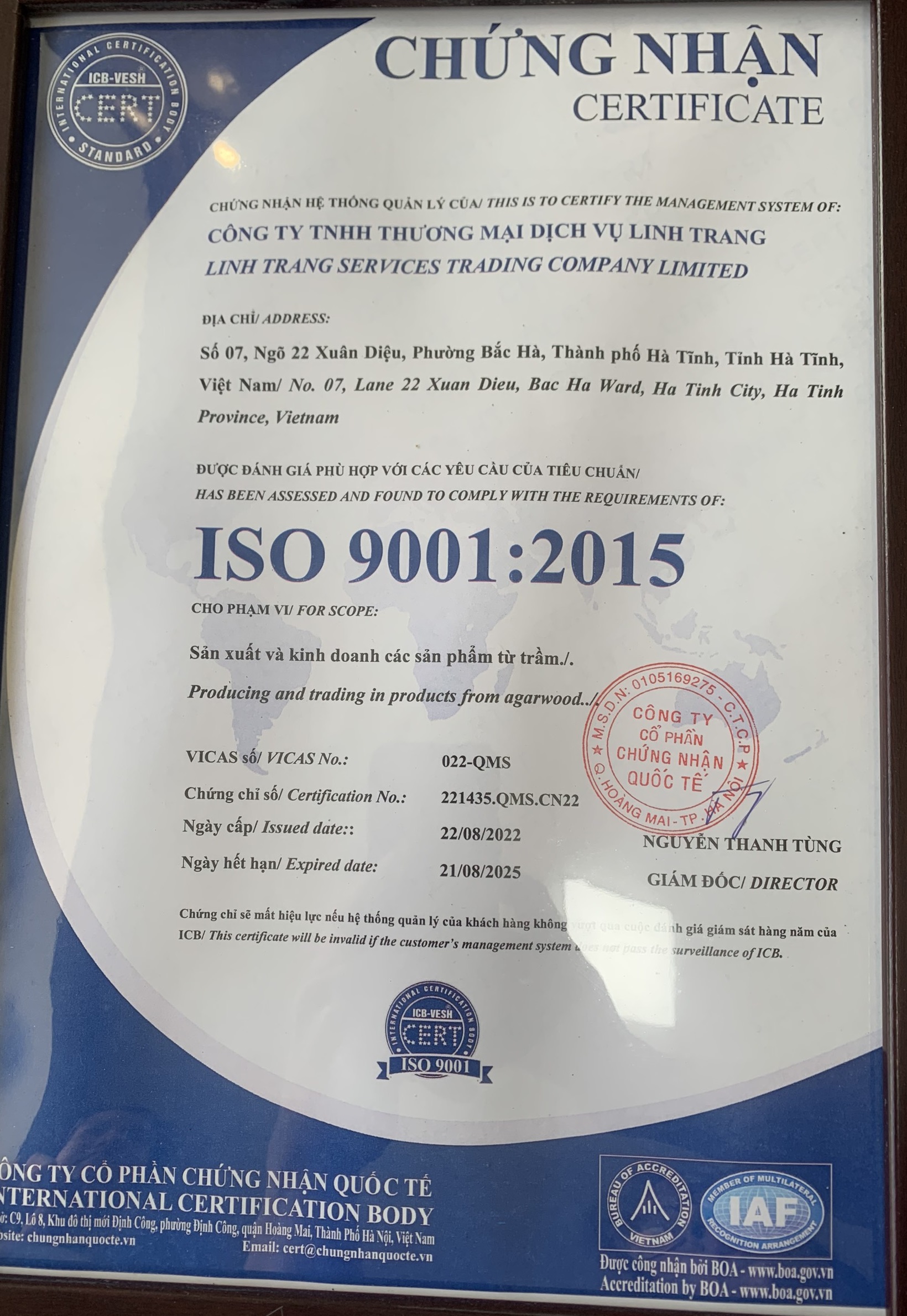 Công ty TNHH TMDV Linh Trang - Số 07, ngõ 22 Xuân Diệu, Phường Bắc Hà, Thành phố Hà Tĩnh, Hà Tĩnh