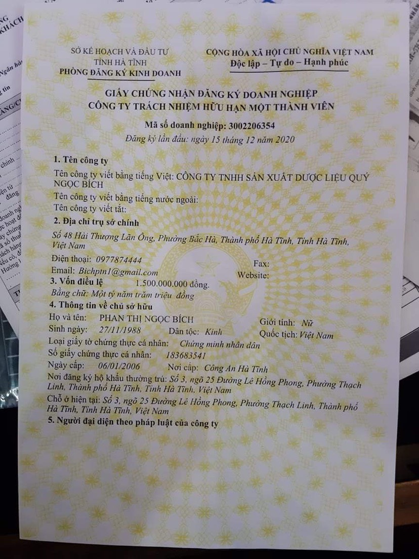 Công ty TNHH Sản xuất Dược liệu quý Ngọc Bích