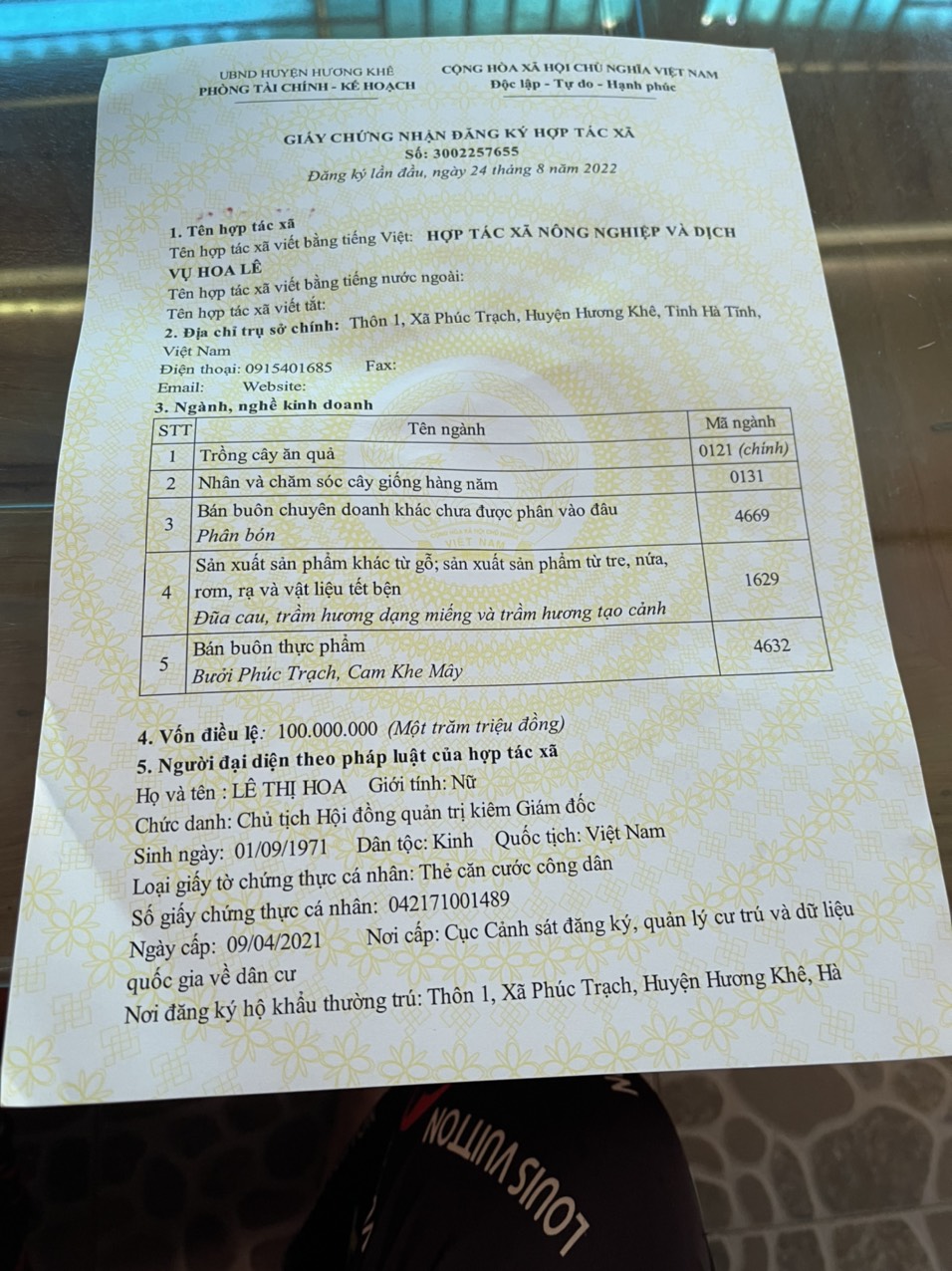Do đó, HTX Hoa Lê đã thành lập vào tháng 8/2022 nhằm tập hợp những người nông dân có nguyện vọng quảng bá thương hiệu, tiêu thụ sản phẩm này rộng hơn ở các thị trường tiêu thụ trong nước. Nhằm nâng cao năng lực trồng trọt, năng suất chất lượng sản phẩm