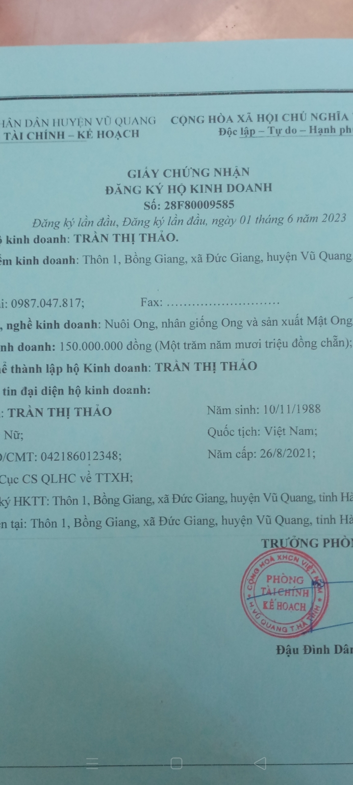 Thôn 1 Bồng giang xã Đức Giang huyện vũ quang tỉnh hà tĩnh