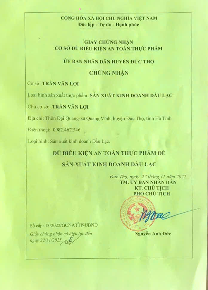 Nhằm đáp ứng nhu cầu ngày càng cao của thị trường, Cở sở chế biến dầu lạc Mai Lợii ( Thôn Đại Quang, xã Quang Vĩnh) đã thu mua hạt lạc của bà con trên địa bàn để chế biến thành dầu lạc. Sản phẩm sản xuất ra không chỉ tạo đầu ra ổn định cho người trồng lạc mà còn đáp ứng nhu cầu tiêu dùng thực phẩm sạch và an toàn của người dân. Qua đó, góp phần nâng cao giá trị nông sản trên địa bàn.
