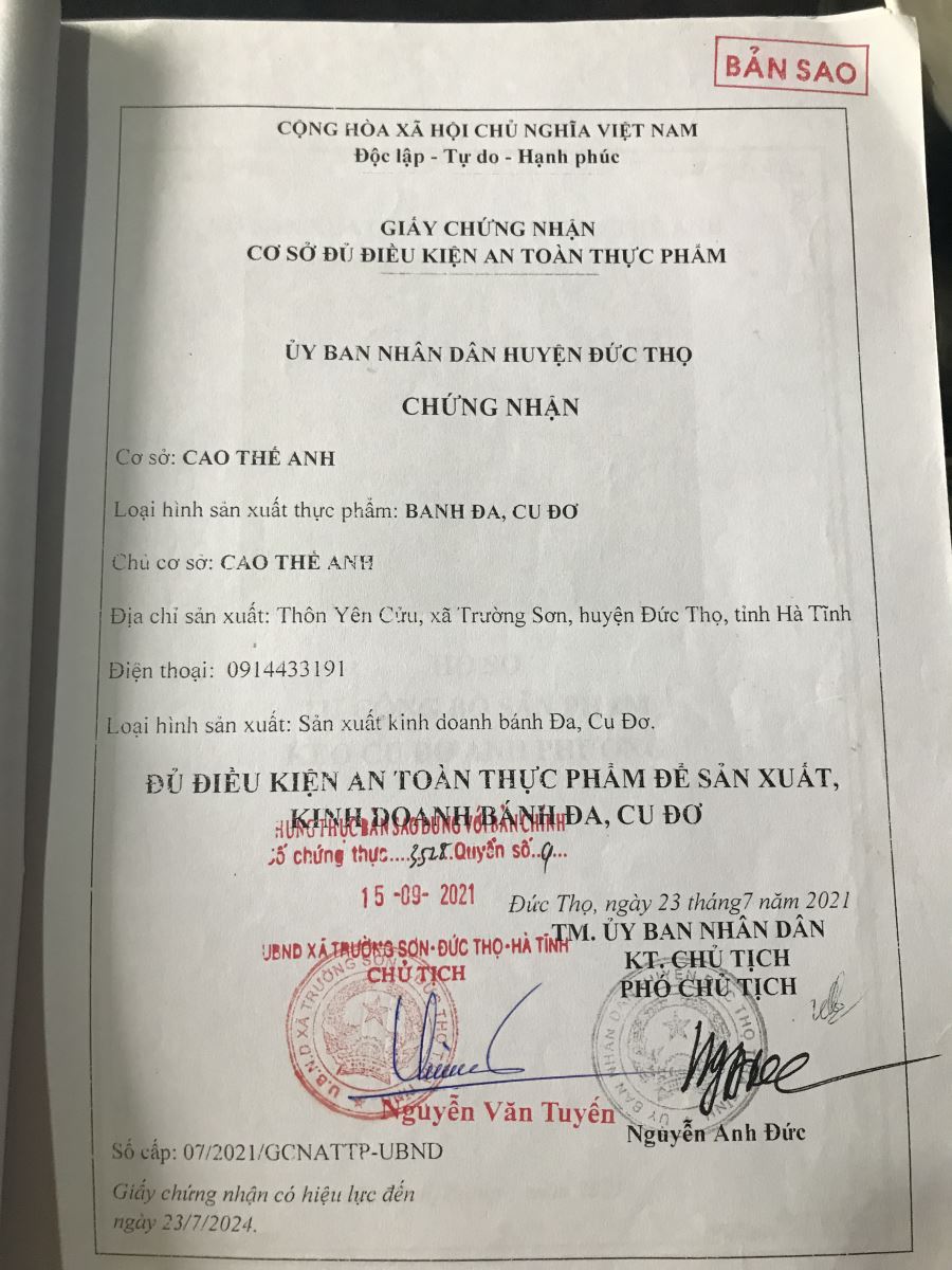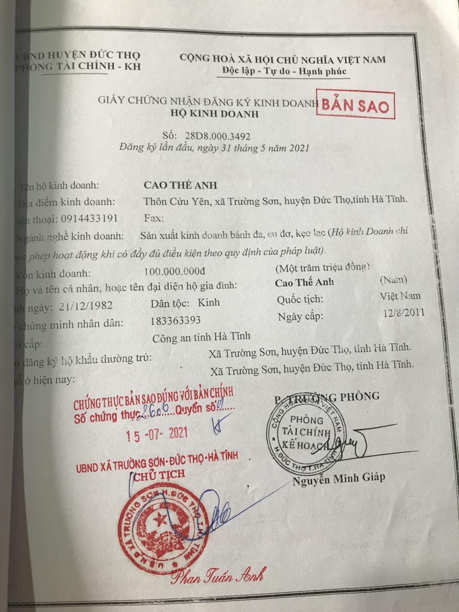 Hộ sản xuất kinh doanh Cao Thế Anh