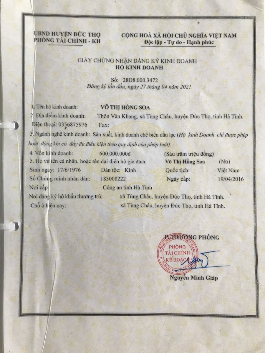 Hộ sản xuất kinh doanh Võ Thị Hồng Soa