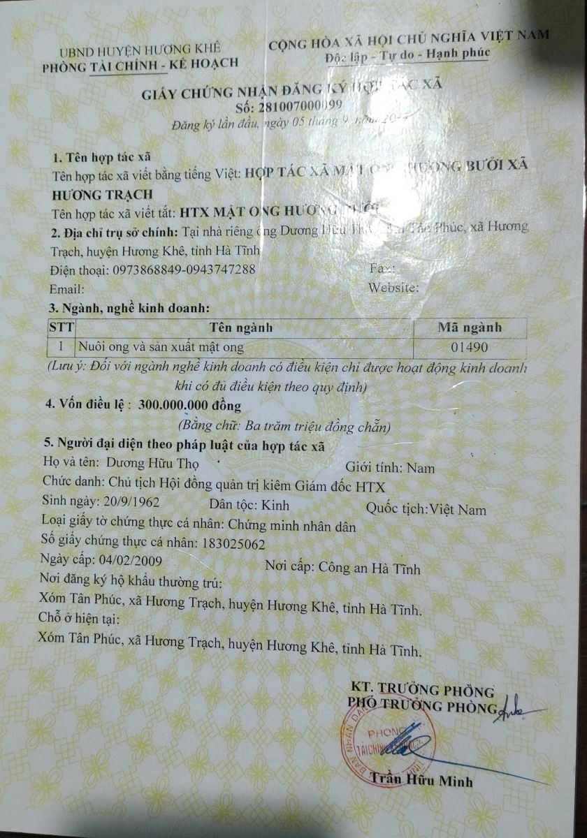 HTX Mật ong Hương Bưởi xã Hương Trạch