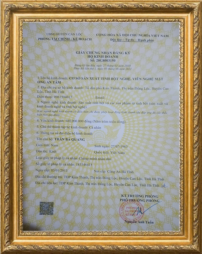 Cơ sở sản xuất tinh bột nghệ, viên nghệ mật ong An Tâm