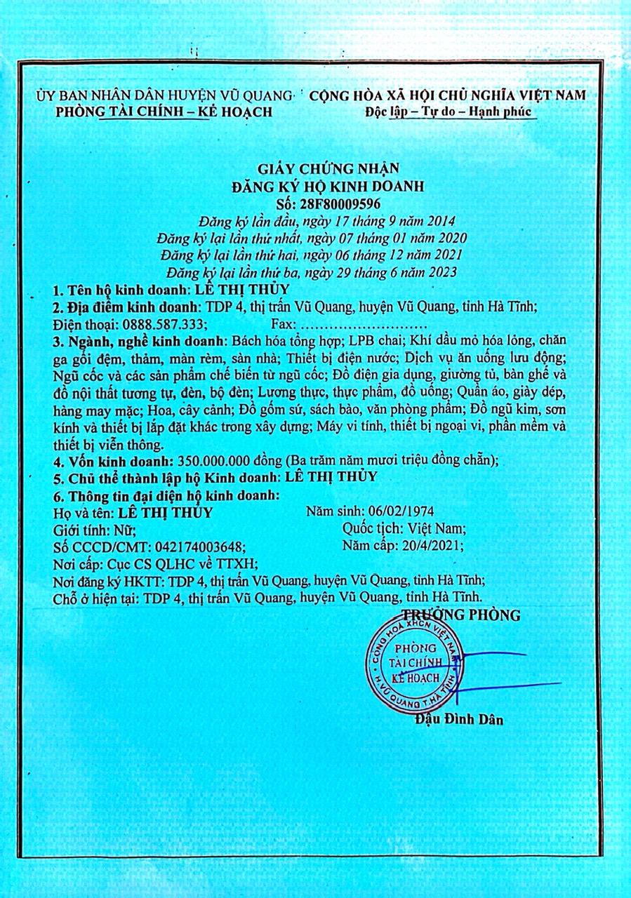 ĐC: TDP 5, thị trấn Vũ Quang, huyện Vũ Quang, tỉnh Hà Tĩnh