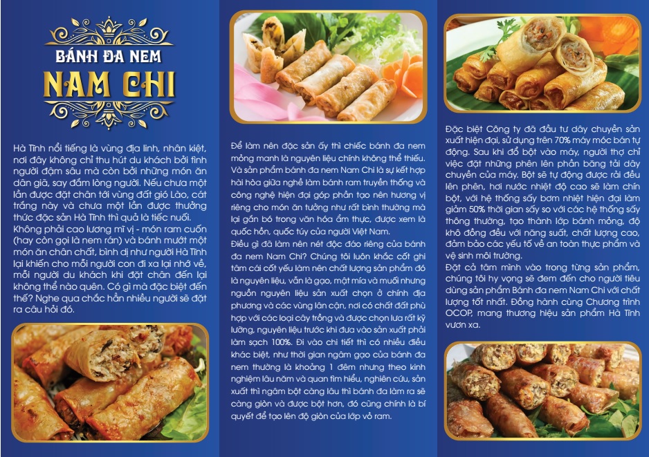 Cơ sở sản xuất và Bánh đa nem Nam Chi chúng tôi sản xuất theo quy trình khép kín. Với quy mô khu sản xuất rộng (1.321 m2), thiết kế phù hợp gồm: Kho bảo quản nguyên liệu khô, khu sơ chế nguyên liệu đầu vào, khu chế biến, sân phơi, khu hoàn thiện sản phẩm, kho bảo quản sản phẩm, lối nhập hàng. Cơ sở chúng tôi đóng gần trung tâm thành phố Hà Tĩnh, có điều kiện giao thông thuận tiện, có khả năng quản lý và điều hành tốt trong sản xuất kinh doanh. Thay thế từ sản xuất thủ công, sang sản xuất bán tự động, làm tăng năng suất, giảm bớt chi phí, giá cả cạnh tranh, chất lượng luôn ổn định và đảm bảo vệ sinh an toàn thực phẩm.