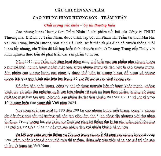- Tên sản phẩm: Cao nhung hươu Hương Sơn - Trầm Nhân