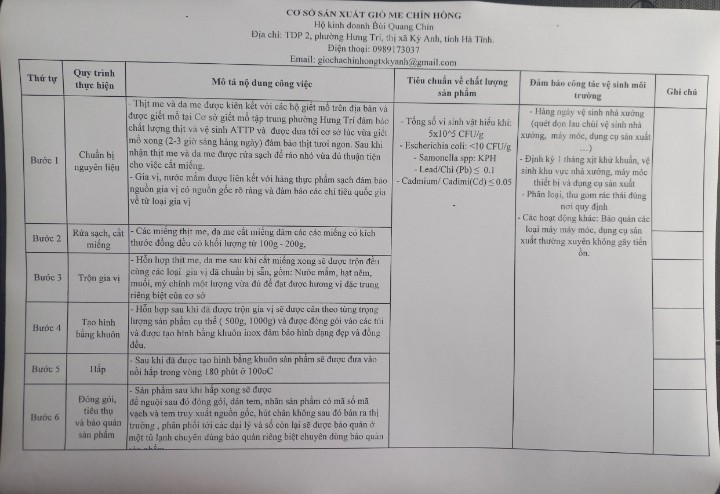 Giấy chứng nhận đảm bảo an toàn vệ sinh thực phẩm số cấp: 06/2020/ATTP-CNĐK do UBND thị xã cấp, ngày 22 tháng 10 năm 2020, Nơi cấp: UBND thị xã Kỳ Anh