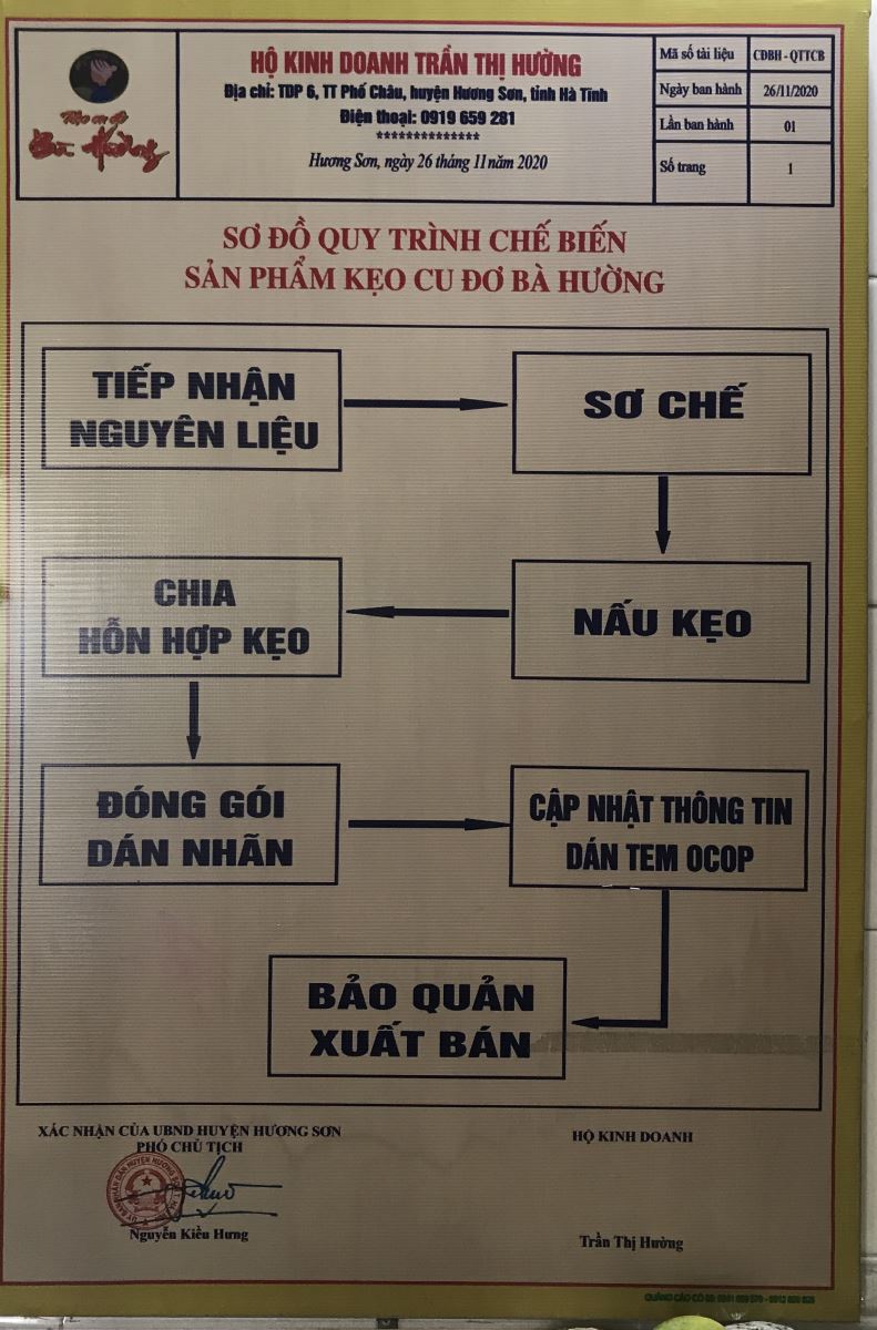 Kẹo cu đơ Hương Sơn (Bà Hường) là sản phẩm được chế biến từ lạc nhân, mật mía, gừng tươi, mạch nha và bánh đa theo công thức đặc biệt. Hiện nay, cơ sở sản xuất cung cấp sản phẩm ra thị trường với 02 loại sản phẩm là kẹo cu đơ hình tròn và hình bán nguyệt.