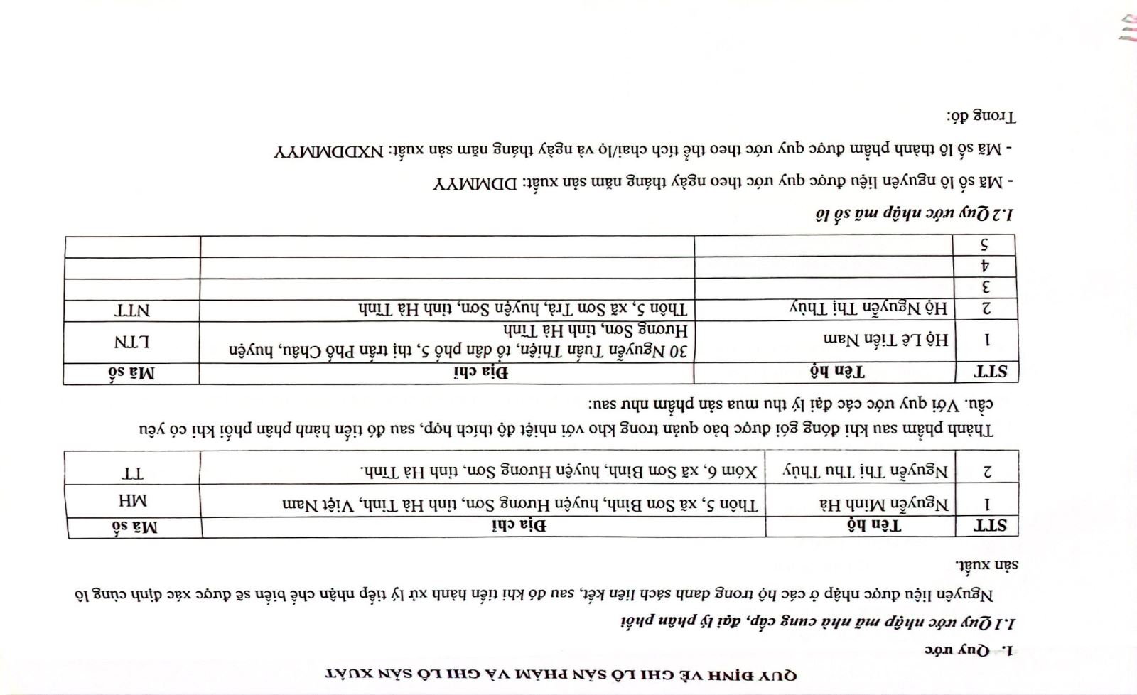 Tên đơn vị/nhà sản xuất: Hộ kinh doanh Nguyễn Minh Hà