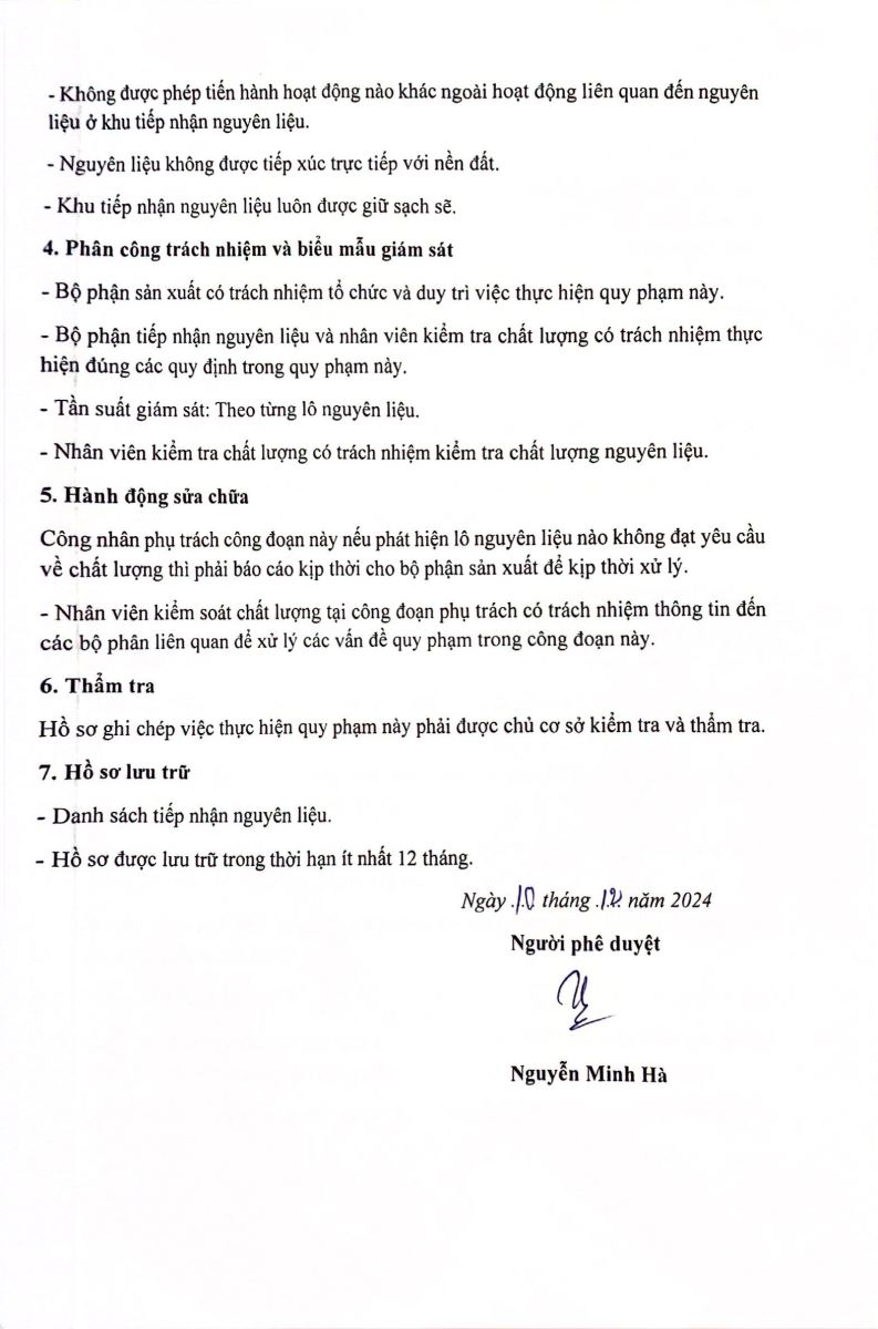 - Tiêu chuẩn: TCCS 01:2024/NGUYENMINHHA