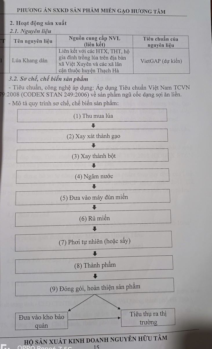 Tên đơn vị/nhà sản xuất: Hộ sản xuất, kinh doanh Nguyễn Hữu Tâm