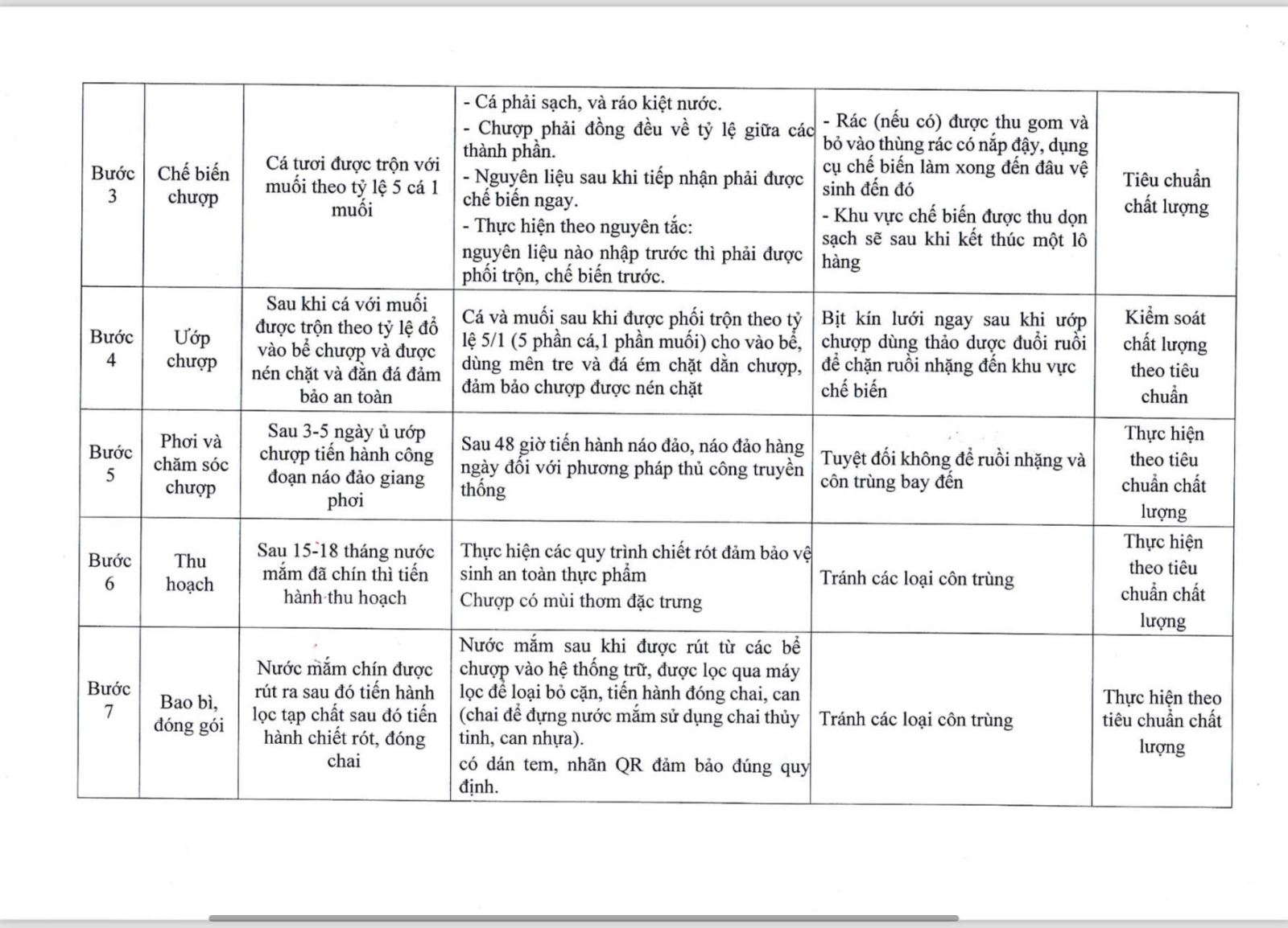 - Luôn tuân thủ chặt chẽ quy trình chế biến công phu và tinh tế trong tất cả các công đoạn. Từ việc lựa chọn nguồn nguyên liệu, các thành viên đã tinh chọn, chỉ mua nguồn cá chất lượng, ít lẫn cá tạp. Tỷ lệ cá và muối cũng được kiểm soát chặt chẽ để bảo đảm chất lượng nước mắm thơm ngon.