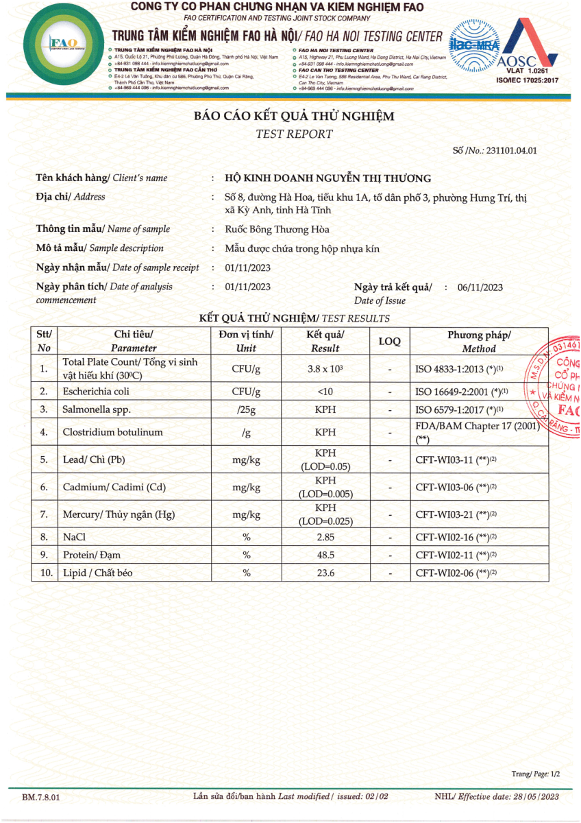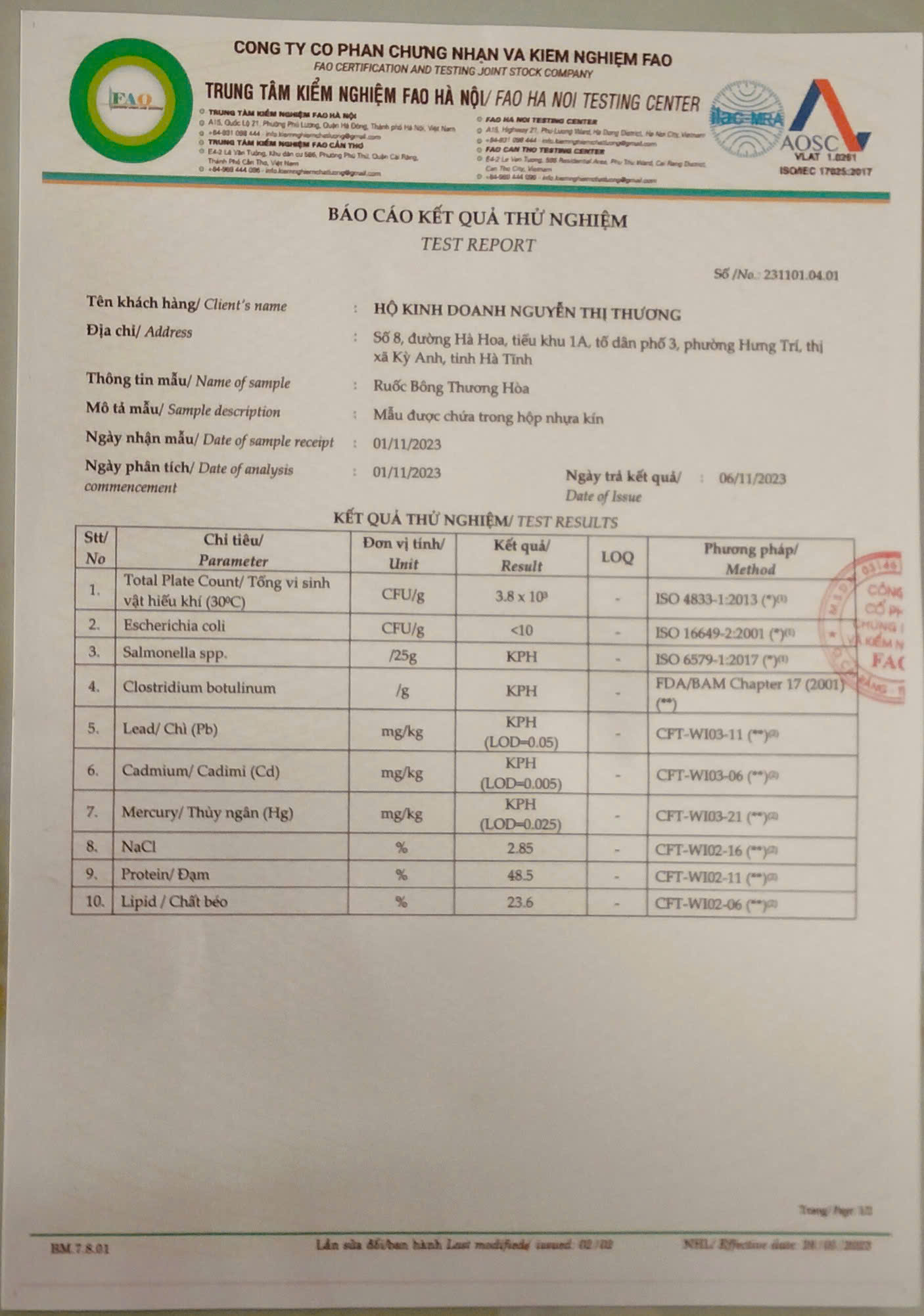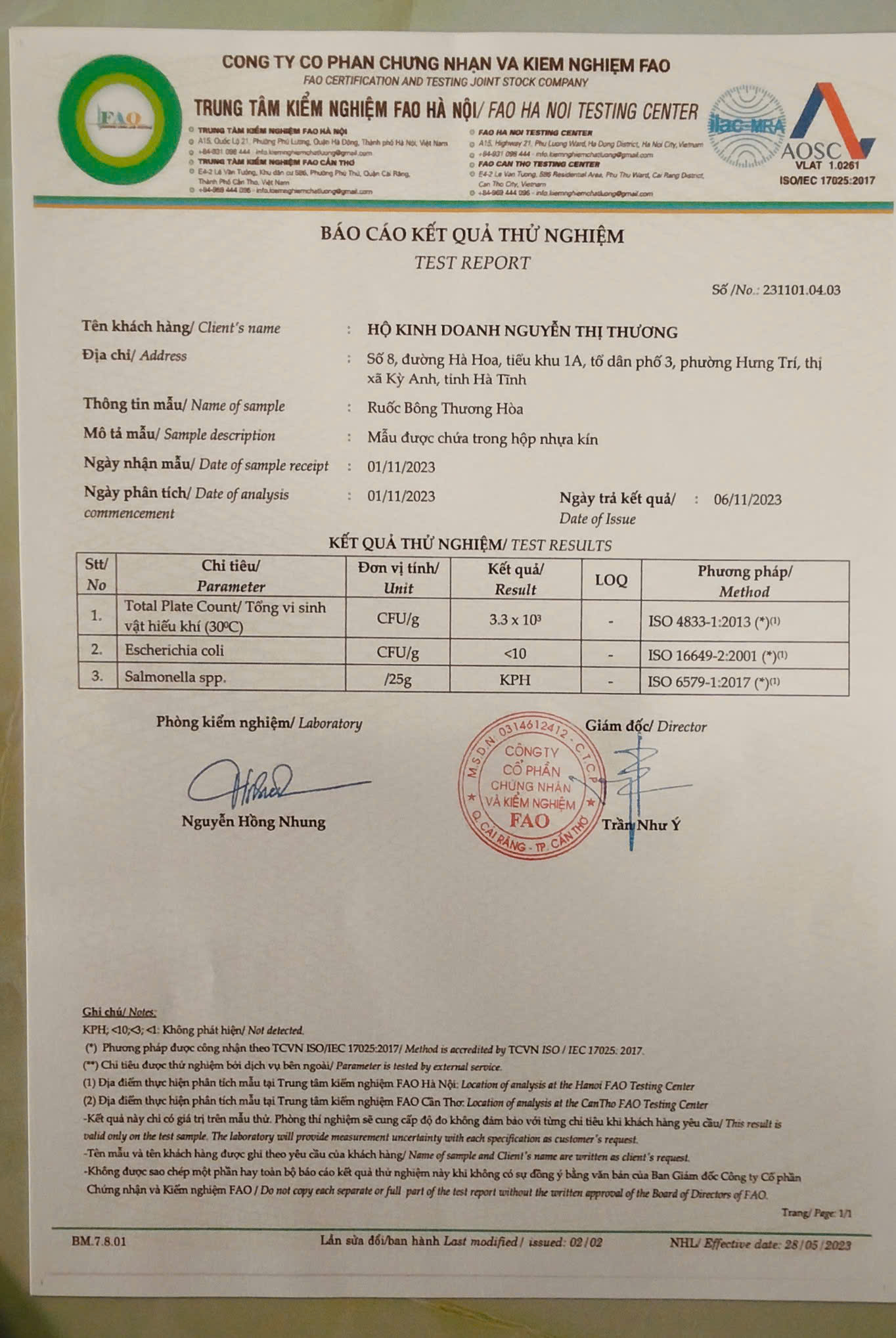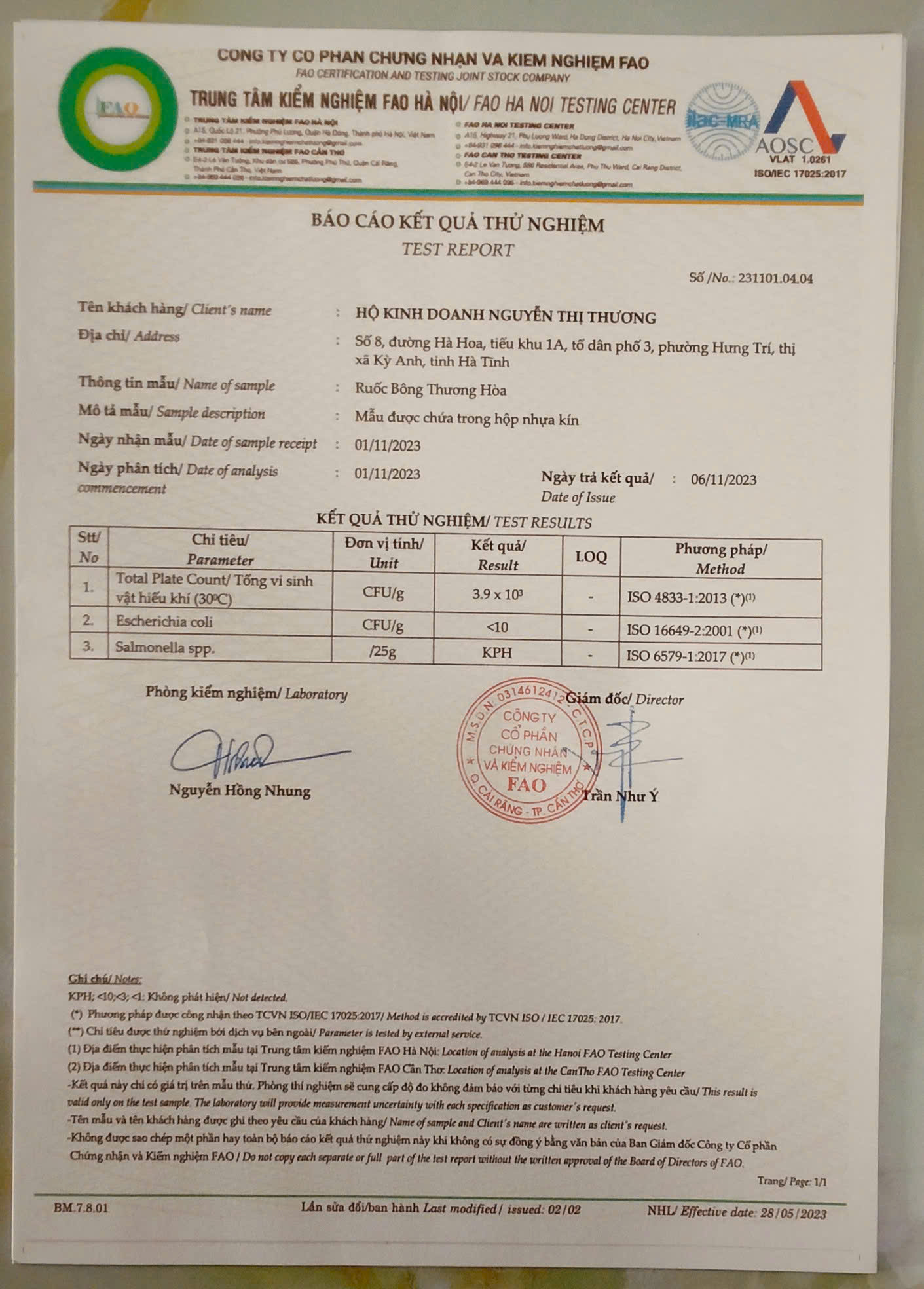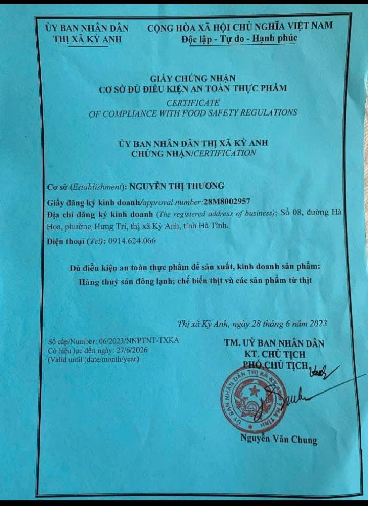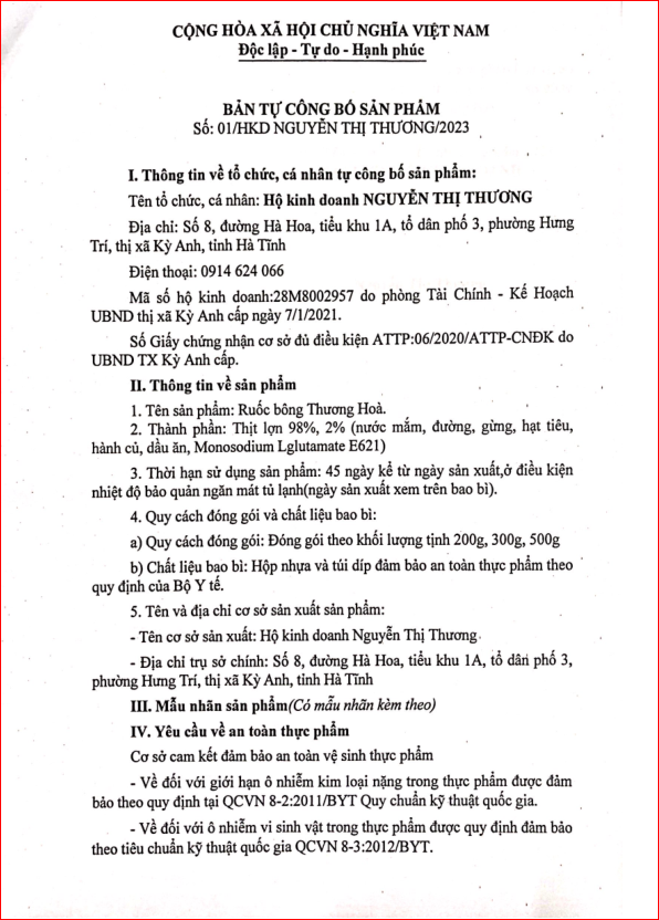 Tên đơn vị/nhà sản xuất: Hộ kinh doanh Nguyễn Thị Thương