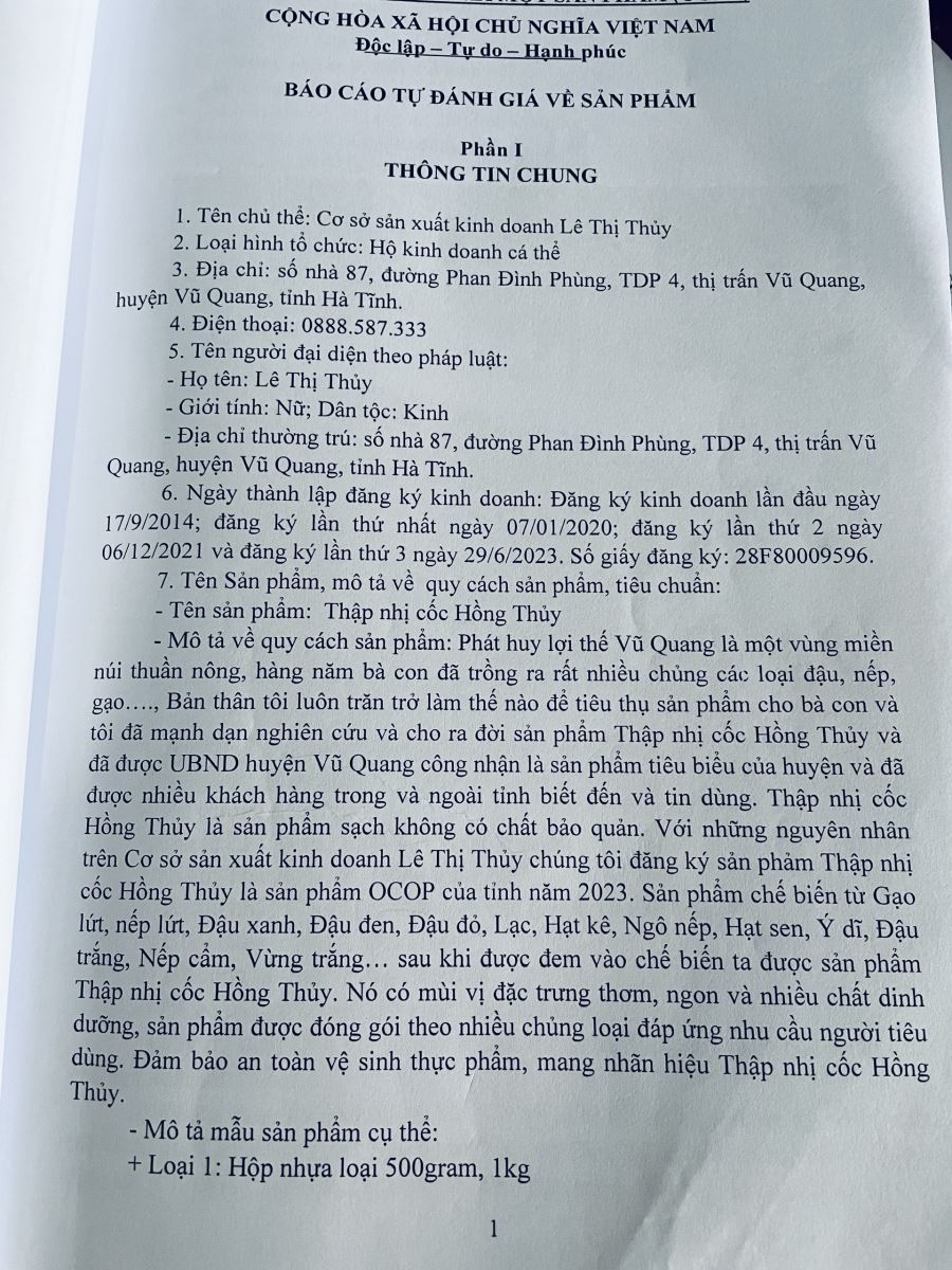 Thập nhị cốc Hồng Thuỷ là sản phẩm được làm từ 100% nguyên liệu tự nhiên là các hạt nông sản của mảnh đất Vũ Quang. Một thức uống thơm ngon, giàu chất dinh dưỡng, mang đậm bản sắc làng quê Việt.