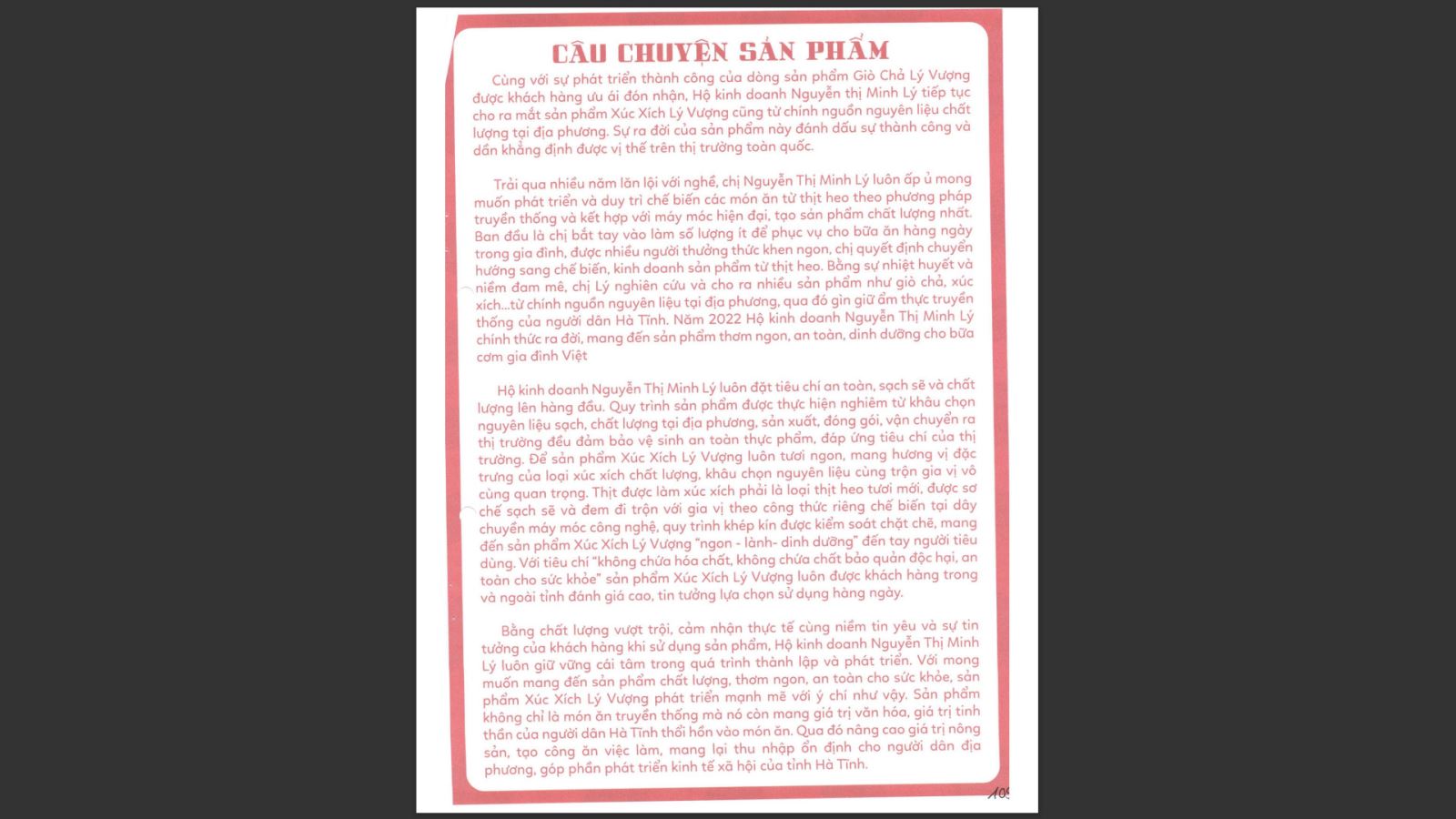 Tên đơn vị/nhà sản xuất: Hộ kinh doanh Nguyễn Thị Minh Lý